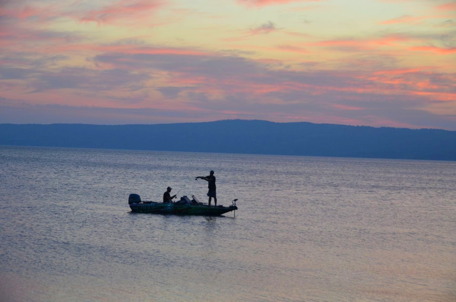 Bolsena (Viterbo) – I canneti sulle rive del lago formano l’ambiente ideale per la nidificazione. All’ora del tramonto gli uccelli cercano un luogo quieto per andare a dormire. La garzetta si stacca dall’acqua per un ultimo volo prima della notte. Il sole che va scomparendo dietro le colline riempie di mille riflessi la superficie del lago e colora di rosa-rosso-oro le mura del Castello di Bolsena.