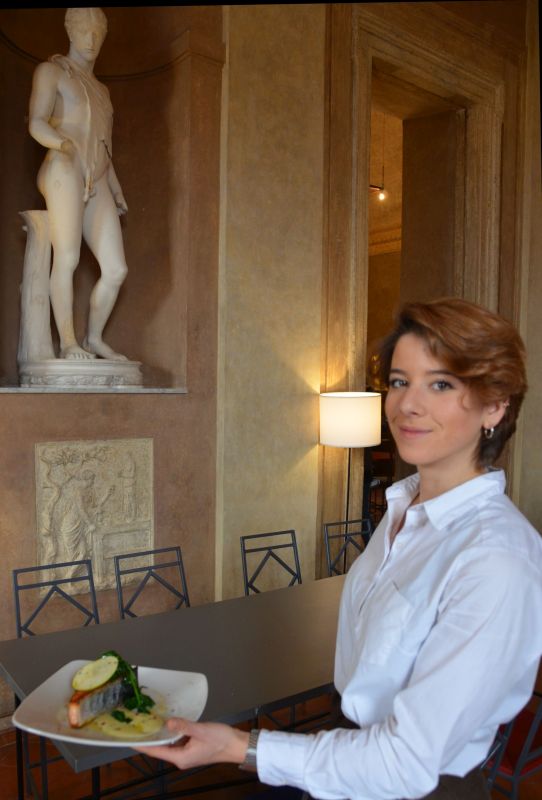 Roma – Un trancio di salmone, un’insalata greca, un panino sfizioso: possono essere le voci di un menu da gustare a pranzo, ma nel ristorante bistrot “Colbert” si trasformano in un’esperienza unica. La bella sala che ospita la caffetteria con statue nelle nicchie alle pareti e un balcone che sembra un dipinto affacciato com’è sul centro storico di Roma si trova infatti all’interno di Villa Medici, la sede dell’Accademie di Francia a pochi passi da Trinità dei Monti. Quattro giovani si sono innamorati di questa location e regalano agli ospiti che si siedono ai tavoli del bistrot non solo la piacevolezza di una pausa pranzo all’insegna di una cucina curata e selezionata negli ingredienti, ma la possibilità di vivere appieno la bellezza che si respira in questo splendido palazzo del ‘500. Dalle 10 del mattino al tramonto ci si accomoda qui anche per un tè accompagnato da torte fatte in casa come l’ottima torta alle carote o per un aperitivo. Impossibile non lanciare spesso degli sguardi ammirati all’eleganza della sala per la quale è stato scelto un arredamento moderno ma allo stesso tempo discreto. O rimanere rapiti dalla grande finestra che inquadra alla perfezione la cupola della chiesa di San Carlo che si trova a Via del Corso.