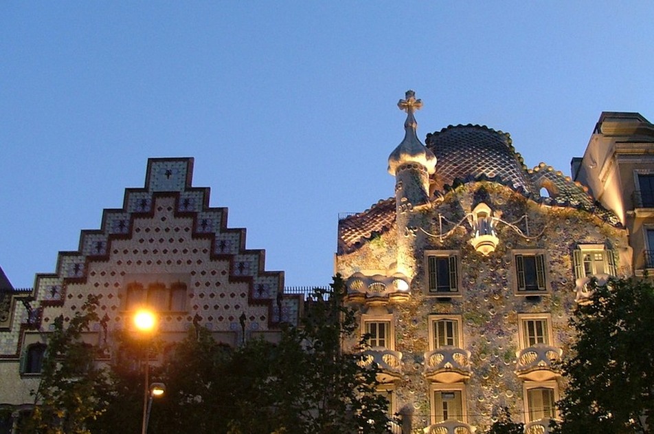 Informale e perfetta, Barcellona invita a continuare a muoversi seguendo il tracciato della Rambla. La Plaça de Catalunya è immensa e due fontane circolari sono impegnate a zampillare acqua: forse la fonte dell’eterna giovinezza della città. La strada da qui cambia nome, diventa Rambla Catalunya, e si addentra nel quartiere dell’Eixample (l’ampliamento) messo in atto a partire dal 1854. Un progetto urbanistico grandioso che, dopo aver demolito le mura medievali, ha lasciato più tardi briglia sciolta alla fantasia degli architetti modernisti. I palazzi-simbolo di questo entusiasmo architettonico, accompagnato da un pizzico di follia, sono la Casa Battlò e la Casa Mila. Antoni Gaudì riceveva incarichi da ricchi commercianti e le sue creazioni sono così geniali da essersi trasformate nel polo di attrazione di Barcellona. La luce lascia con riluttanza spazio al buio e ci fermiamo a lungo ad osservare gli “occhi-balconi” delle Casa Battlò, le linee morbide che hanno bandito la linee retta ed i colori tenui dell’intonaco. Di giorno i palazzi del Quadrat d’Or oltre all’originalità mostrano la loro eleganza. I viali perfettamente perpendicolari uni agli altri, sono ampi, alberati e arricchiti da attenti particolari di arredo urbano, come panchine e lampioni dalle linee stravaganti, ma raffinate.