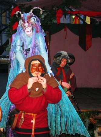 Esslingen – Una maliarda vestita di stracci colorati cammina maestosamente sui trampoli lungo le stradine della città vecchia. La seguono una compagnia disordinata di saltimbanchi e suonatori di canzoni medievali. Gli artisti da strada animano i pomeriggi e le serate del mercatino natalizio di Esslingen,